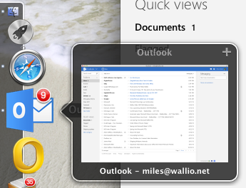 Outlook has a mobile layout. If we want, we can have Outlook in our status bar. One of the problems is we are unable to update the Status bar icon. The app doesn't run in the dock though, and can be used in conjunction with our "desktop app".