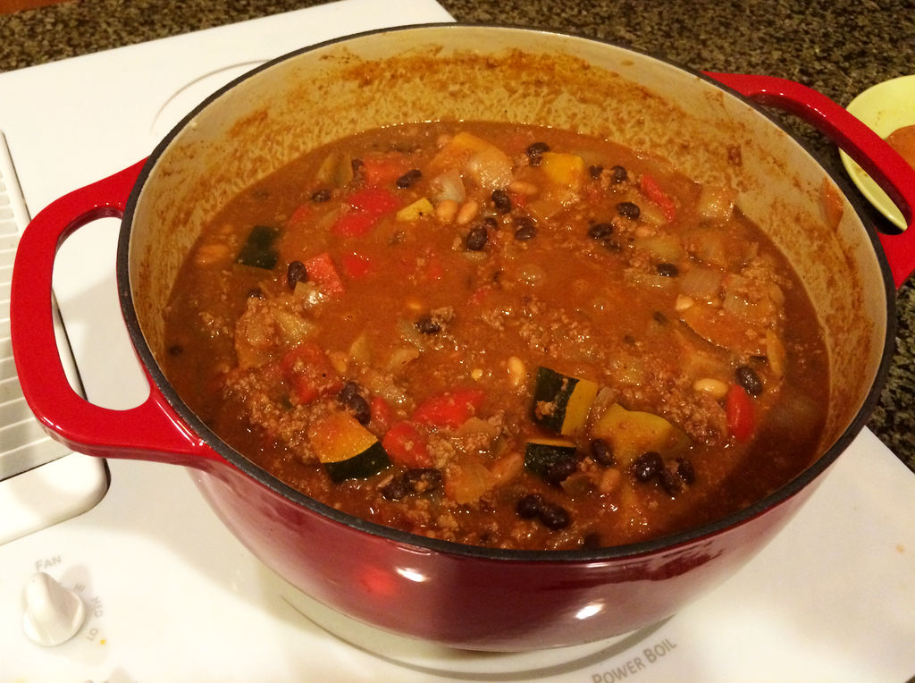 Almost all of this recipe is based off of this Award Winning Chili just with some Acorn Squash and a few substitutions from my pantry.